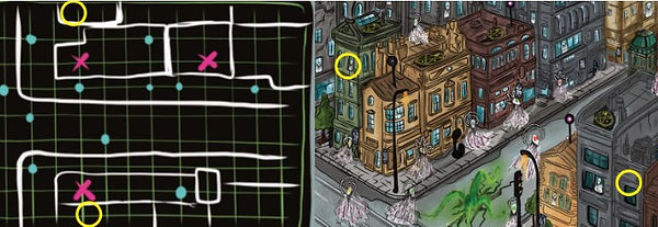Het enige dat overblijft is het vinden van een hint die door de agent is achtergelaten. Hij liet je op de een of andere manier de volgorde van de gebouwen zien.